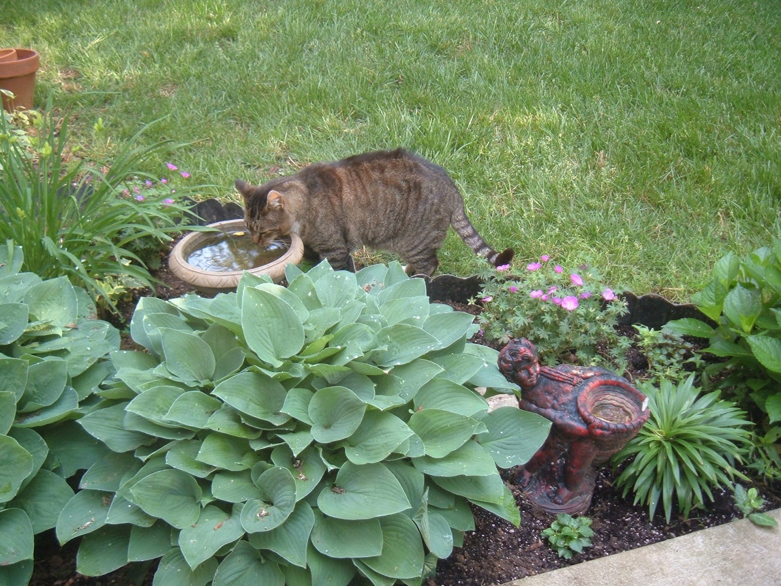 and then planted a few things. I added some white impatiens and two perennial geraniums to this bed. I think it is done. When the impatiens grow, they will fill out between the other perennials.